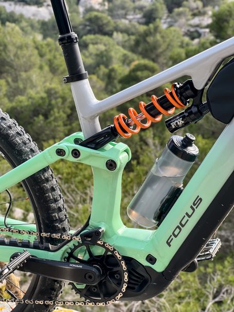 Grâce à la cinématique du cadre, ce vélo autorise jusqu'à 35% de SAG, ce qui est supérieur à la moyenne. Ce sont surtout ses 22 Kg sur la balance qui font du UNNO MITH un véritable engin de plaisir à piloter, tellement il est facile à placer malgré sa batterie de 750 WH.